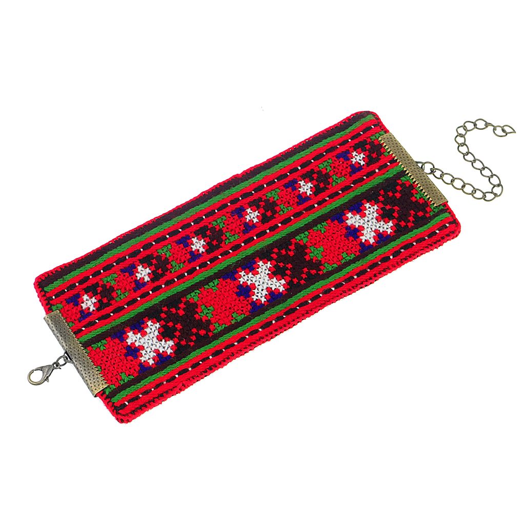 طراحی دستبند بلوچیدوزی نقش نای با ترکیب رنگهای قرمز، مشکی، سبز، سفید و آبی انجام شده است. این رنگها بهصورت دقیق و هماهنگ در کنار هم قرار گرفتهاند و جلوهای بصری خیرهکننده ایجاد کردهاند. هر رنگ در این دستبند حامل پیامی است؛ قرمز نماد عشق و انرژی، مشکی نشاندهنده قدرت و عمق، سبز یادآور طبیعت و آرامش، سفید نماد پاکی و صداقت، و آبی تداعیگر آرامش و آسمان بیکران. این ترکیب رنگی باعث میشود دستبند بلوچیدوزی نقش نای با انواع لباسها و استایلها هماهنگ شود و در هر موقعیتی بدرخشد.